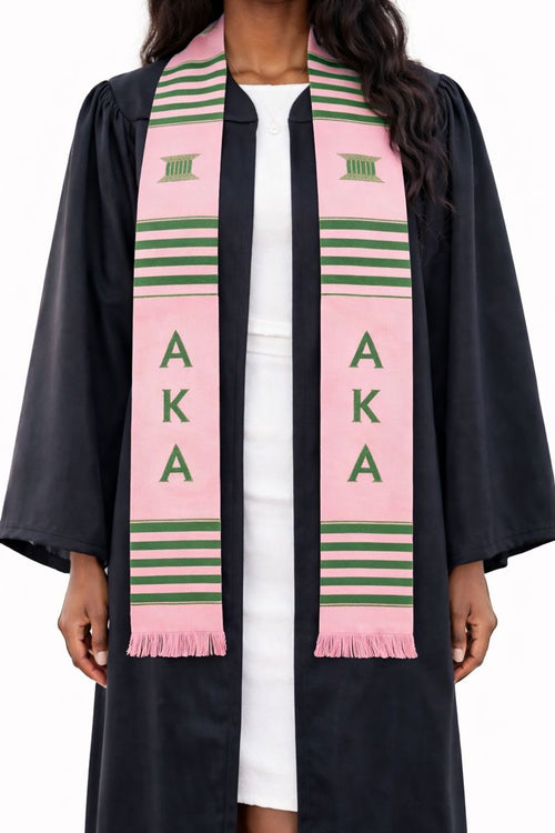 Alpha Kappa Alpha White with Pink Letters Kente Stole